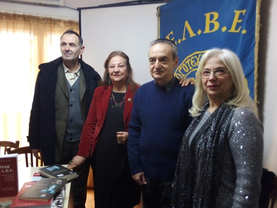 Στιγμιότυπο από την παρουσίαση του έργου του Βασίλη Παππά στην Ε.Λ.Β.Ε. Από αριστερά η Γεωργία Γοργώ Αλεξίου (τέως Πρόεδρος Ε.Λ.Β.Ε.), ο λογοτέχνης Βασίλης Παππάς, η Βασιλική Καρατάσιου Τσιώλη (Γεν. Γρ. Ε.ΛΟ.ΣΥ.Λ.) και ο νυν Πρόεδρος Ελευθέριος Μουφτόγλου.