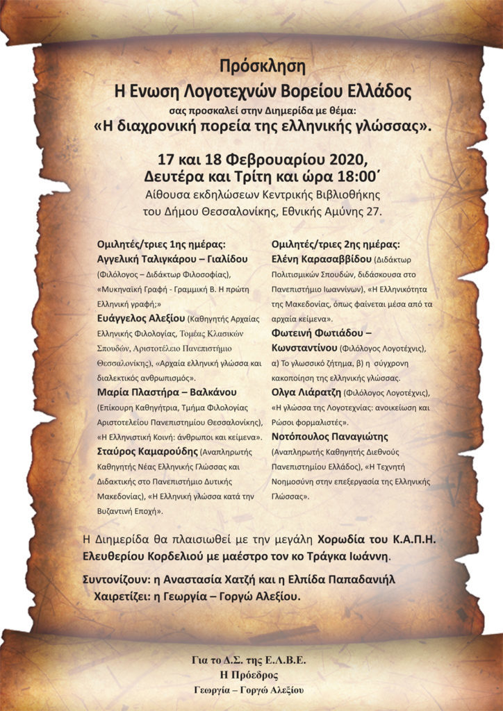 Ποιήματα θα απαγγείλουν τα μέλη της Ε.Λ.Β.Ε. και του «Λογοθέατρου Λογοτεχνών Θεσσαλονίκης»: