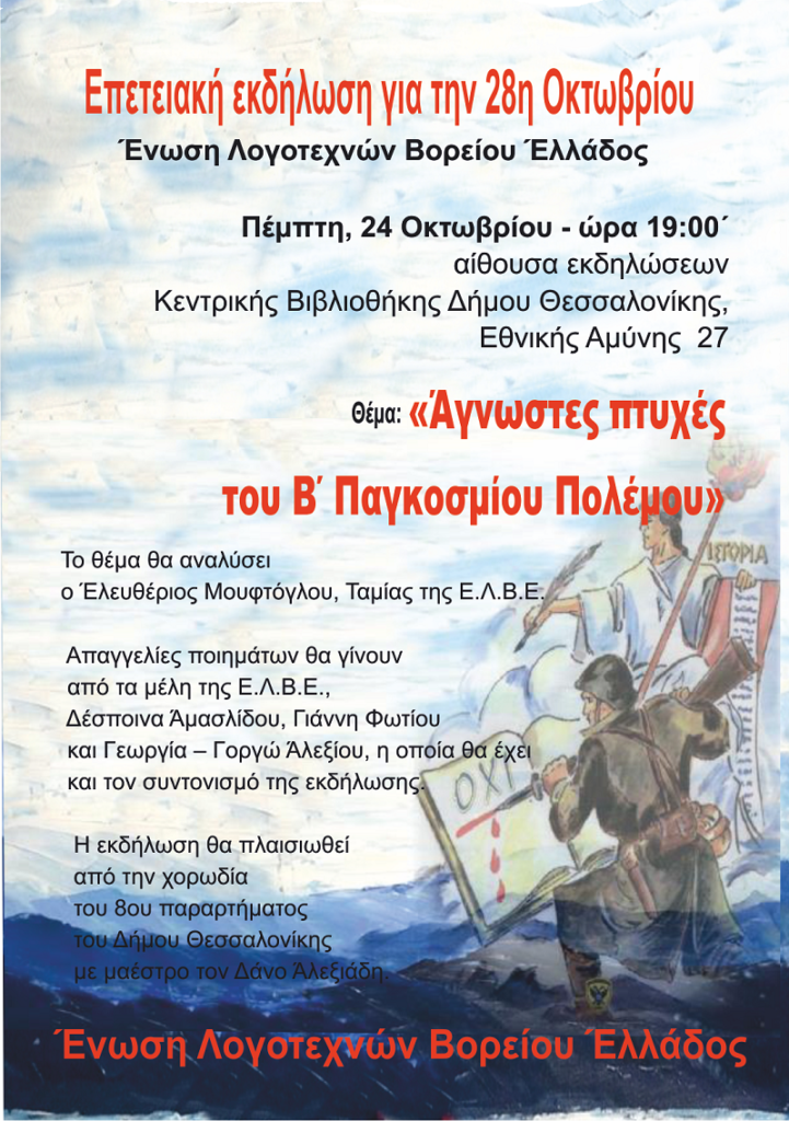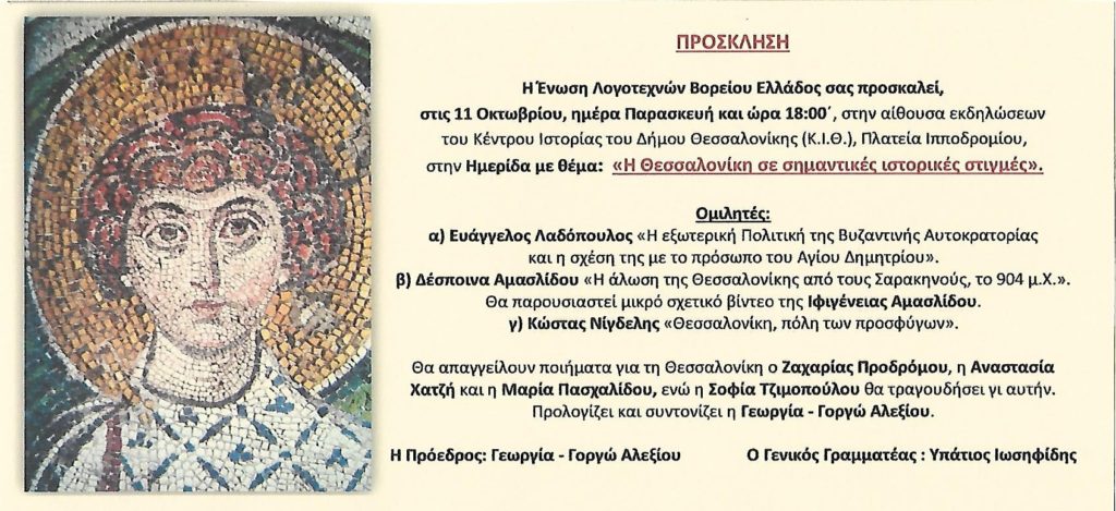 Μεταξύ των εισηγήσεων η Αναστασία Χατζή και η Μαρία Πασχαλίδου, θα απαγγείλουν ποιήματα μελών μας με θέμα την Θεσσαλονίκη.